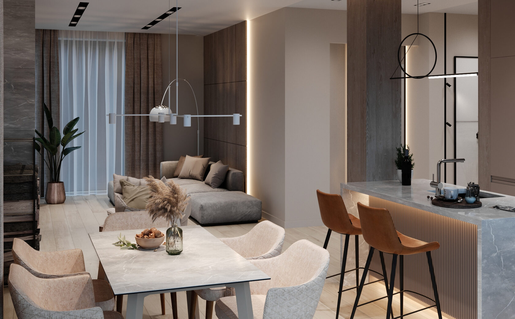 Плюсы - Вы еще на стадии проекта можете вживую увидеть текстуру и фактуру материалов, насколько они сочетаются друг с другом и понять стоимость. При необходимости можно выбрать другой вариант материалов и сразу внести изменения в визуализацию. В последующем вам не нужно тратить массу времени на поездки по магазинам.